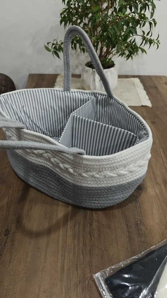 Keep all your baby essentials perfectly organized with this Cotton Rope Diaper Caddy Organizer. Designed for versatility and everyday convenience, this spacious storage basket features multiple compartments and a removable divider, allowing you to customize the layout to fit diapers, wipes, lotions, toys, clothes, and more.